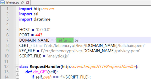 Figure 15. Hard-coded netfusion.tel in the listener.py