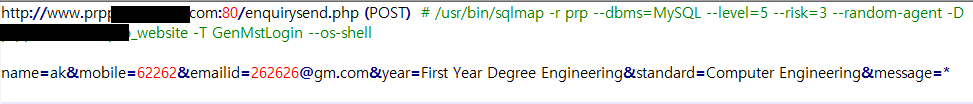 Figure 3. sqlmap exploitation command targeting a government web application over HTTPS using POST parameters